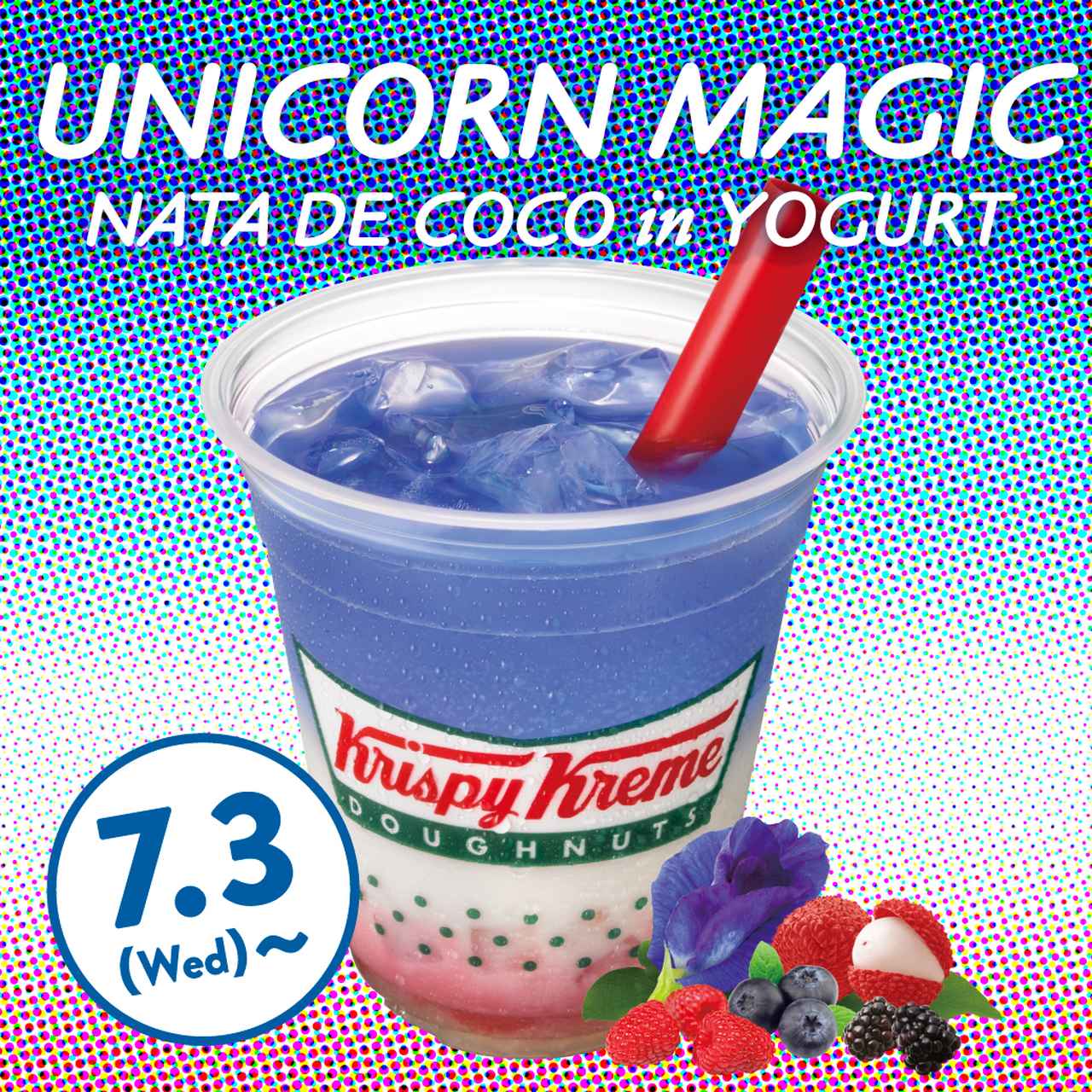 目を引く、“ゆめかわいい”と今年注目されている『ユニコーンカラー』の期間限定ドリンクです」